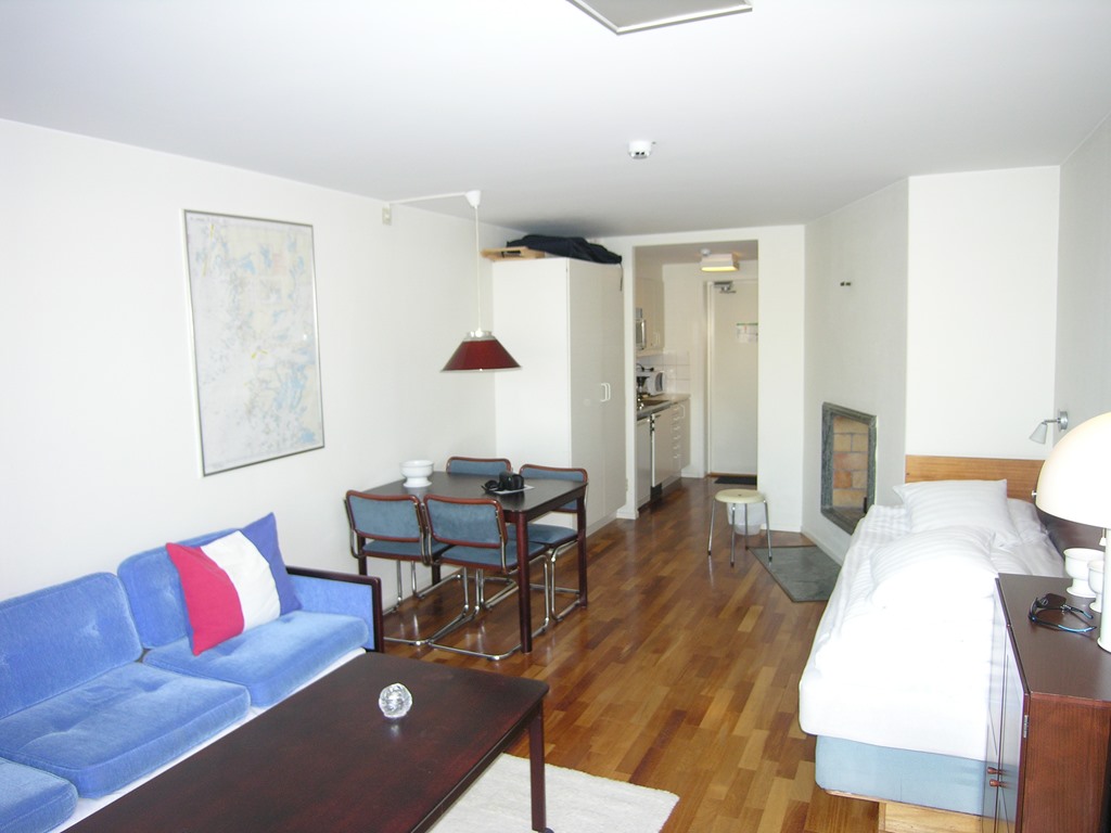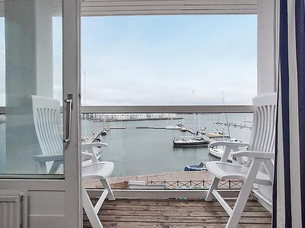 Enkelrum 32 kvm i form av studios i klassisk marin stil. Fullt utrustat kök, från vardagsrumsdelen fransk balkong och utsikt över hamnen, havsutsikt. Fantastiskt fint läge.