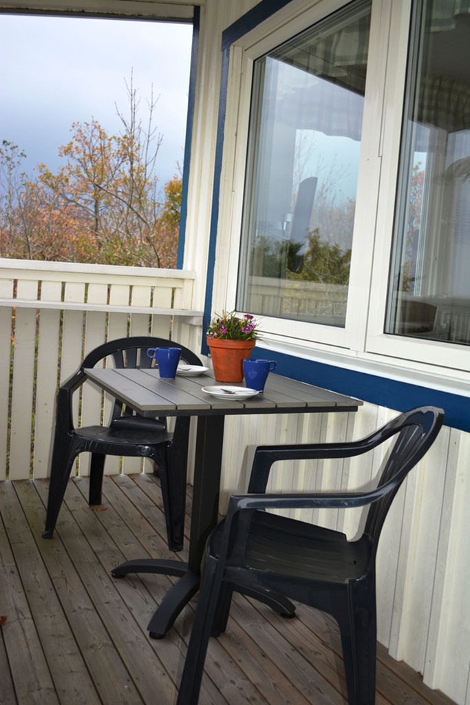 Altan med bord och stolar i anslutning till lägenheten.