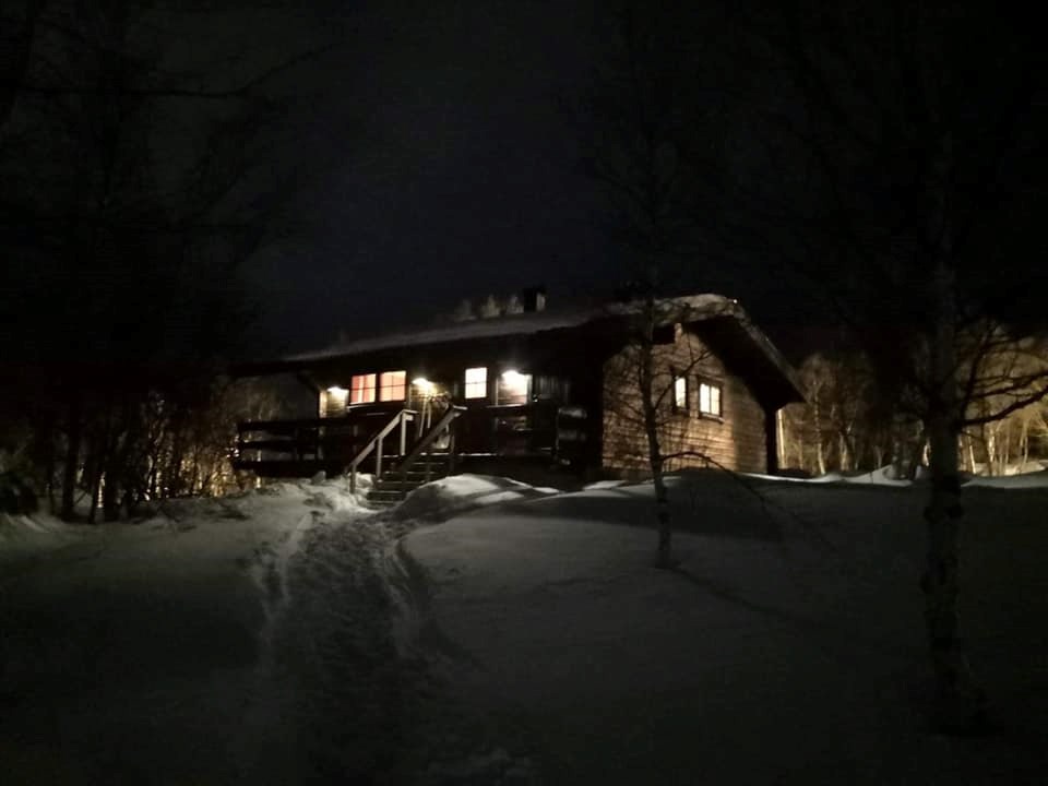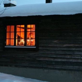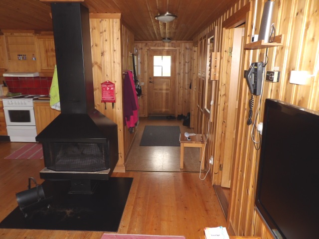 Fjällstuga i timmer med sauna och eldstad