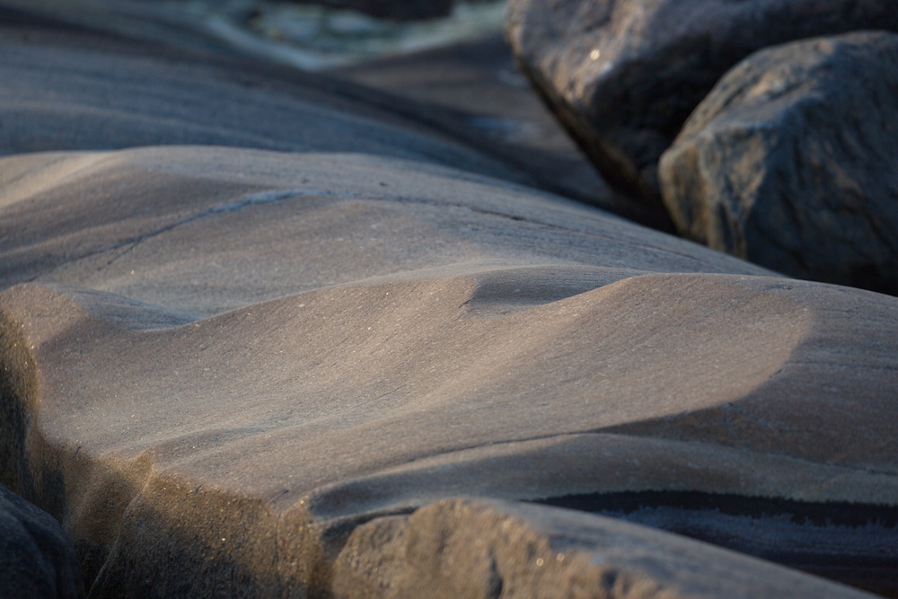 Altan mot havet, sandstranden, klipporna, grillplatser.
