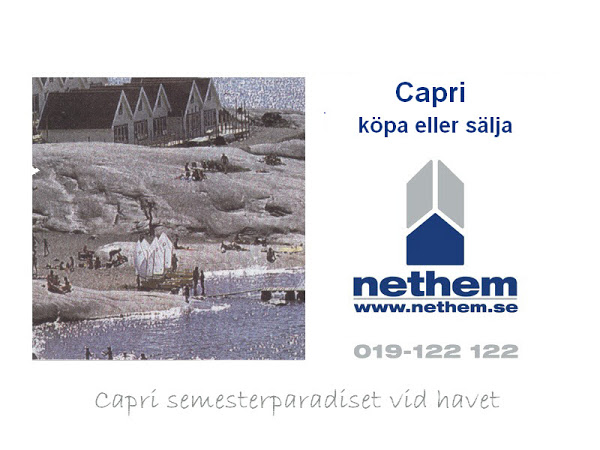 SAMÄGARVILLKOR För att reglera förhållandet mellan de personer som tillsammans äger den på omstående sida angivna bostadsrätten, har följande villkor instiftats § 5 Utöver den i § 1 angivna nyttjandeveckan äger andelsägare på följande villkor rätt till ytterligare en vistelsevecka i lägenheten per år, med början 1979, som ej är upplåten eller ianspråktagen enligt bostadsrättsavtal och samägarvillkor. Denna vistelsevecka kan ej bestämmas till en viss vecka varje år utan andelsägare skall inkomma till bostadsrättsföreningen senast den 31 oktober året före med önskemål om tidpunkt för vistelseveckan för året därpå. Efter detta datum skall bostadsrättsföreningen företaga lottning bland de inkomna önskemål, som avser samma vistelsevecka, samt meddela andelsägare vilken vecka denne tilldelats. Andelsägare, som ej meddelat önskemål om tid, äger dock fortfarande i mån av ledig tid i lägenheten rätt till en vistelsevecka, men får då välja mellan resterande lediga veckor i lägenheten. Sådan andelsägare skall dock i god tid – senast två veckor före önskad vistelsevecka – meddela bostadsrättsföreningen om vistelsevecka, vid äventyr att önskemålet ej kan tillgodoses, oaktat lägenheten är outnyttjad. Ägandet andel av bostadsrätt ger oss precis lagom med semesterveckor med en fast vecka och en bonusvecka som man önskar sig i oktober månad för nästkommande år och vi får uppleva Capri, västkusten, havet det uppskattar vi. För oss är det viktigt att kunna koppla av på riktigt. Det kan vi på Capri. När vi åker till Capri är det bara gemenskap, tid för varandra, vila och uppladdning som gäller – inte renovering, målning eller annat arbete. Allt sådant löser föreningen Brf. Capri, det är skönt. Tips, köp samma andelsveckor i olika hus med andra familjer, vänner, släkt ni vill umgås med och ni träffas varje år på Capri. Vi är övertygade om att ni kommer trivas och ha många lyckliga stunder/dagar/veckor med familj, släkt, vänner och andra ägare". Vi möts på Capri! Reg. fastighetsmäklare Jorma Kerki. Han man inte möjlighet att åka till Capri något år så har man rätt att hyra ut själv om man så önskar. Receptionen på Capri är "jätteduktiga" på att hyra ut. Andelsägare som inte vill städa efter sin vistelse har rätt att använda Rut-avdrag (man säger till i receptionen).