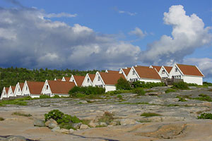 Altan mot havet, klipporna, grillplatser. Capri Strömstad har en av Bohusläns finaste sandstränder och erbjuder 2000 soltimmar om året.
