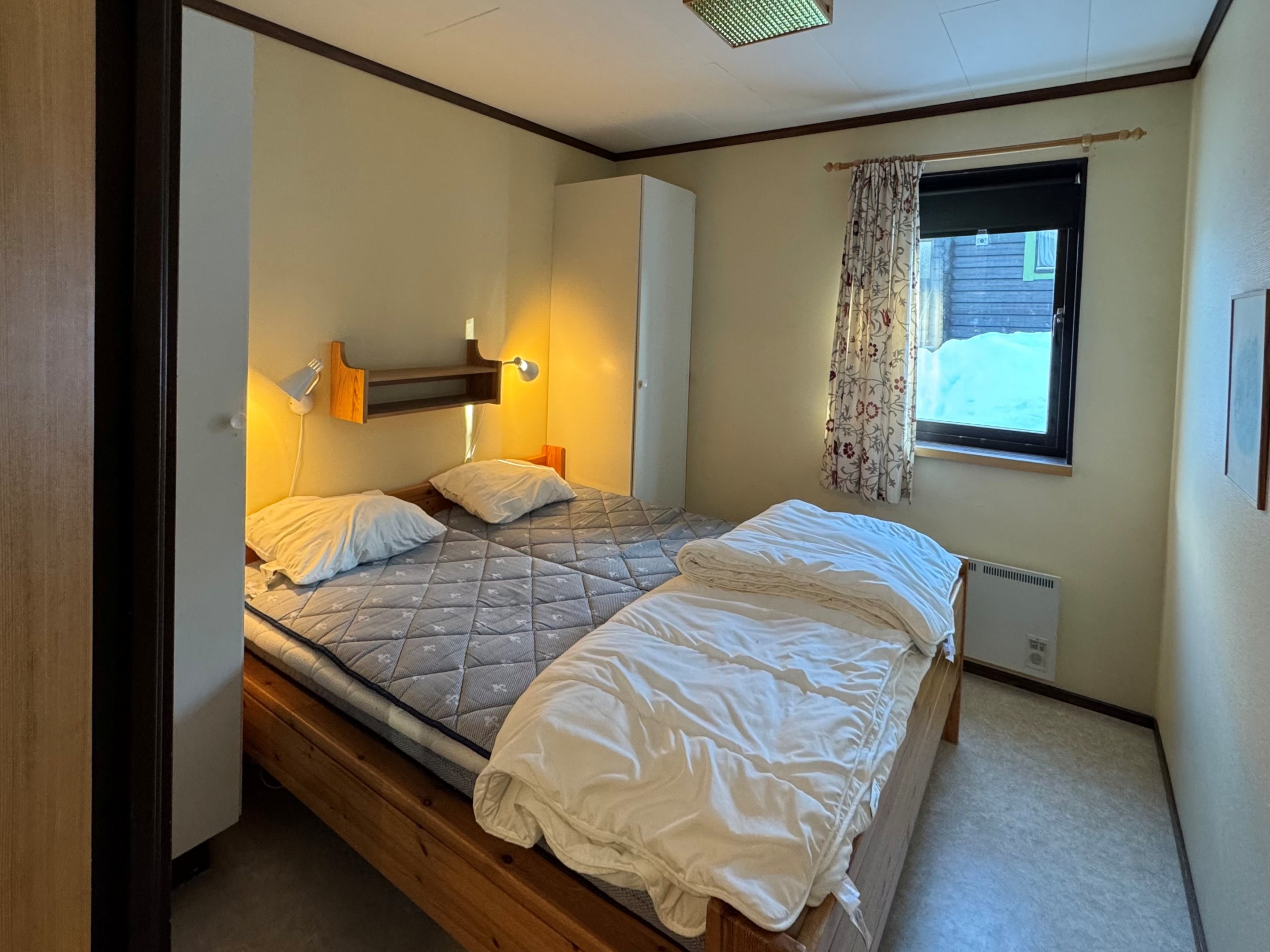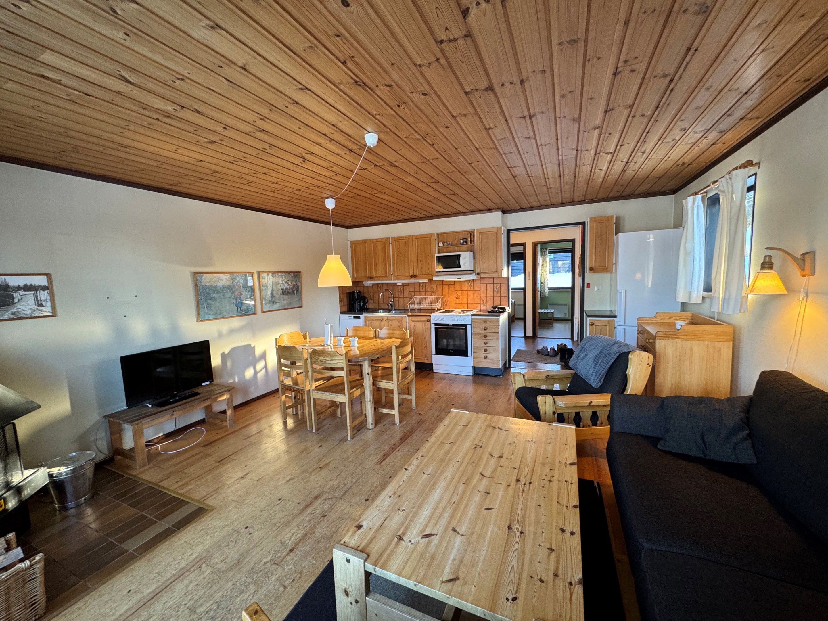 Fjällstuga med 4+2 bäddar, storstuga med köksavdelning och utgång till altan. I storstugan bäddsoffa för två bäddar, braskamin, kabel-tv. I det första sovrummet finns en dubbelsäng. I det andra en våningssäng med två bäddar. Toalett, dusch, torkskåp. Skidförråd. Vallabod.