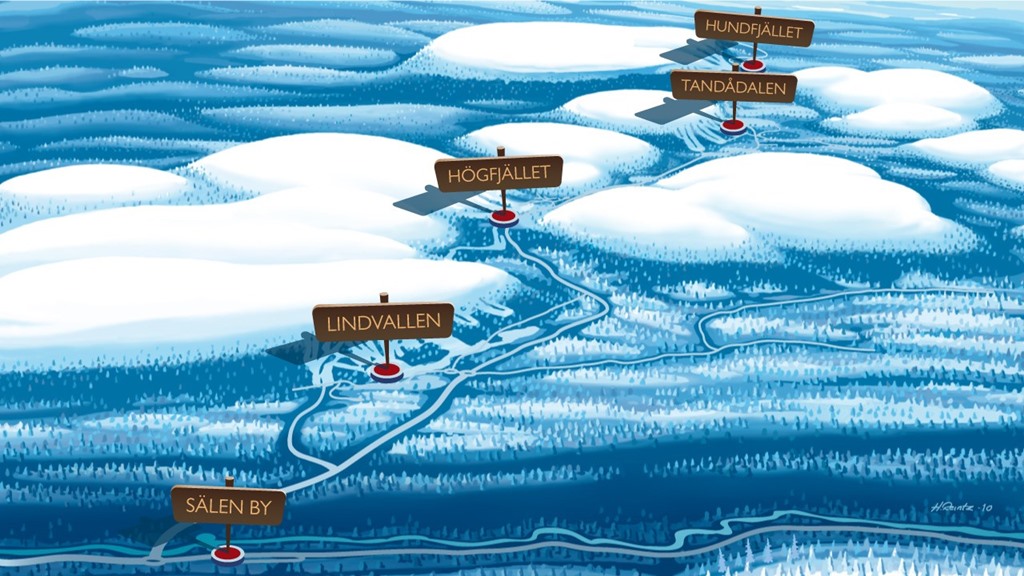 Snösäkraste ort i Sverige är SÄLEN. Snösäkraste ort i Norge är TRYSIL Sveriges största alpina skidområde är SÄLEN och Norges största alpina skidområde är TRYSIL. Området erbjuder drygt 250 pister och ett enormt utbud av restauranger, nöjen, shopping och aktiviteter. Utbudet av upplevelser och antal gäster ökar stadigt även under sommar- och höstperioden. Storfjällsbyn har ett unikt läge mitt i Sveriges största skidområde och granne med Sälens Högfjällshotell. Liftar och skidspår börjar direkt vid anläggningen och i hotellets Vinterträdgård pågår nöjeslivet till småtimmarna. Tretton restauranter från enklare till gourmetrestauranten Oncel Jean finns i anslutning till hotellet. Närhet till Gammelgården, Sälens fjällkyrka.