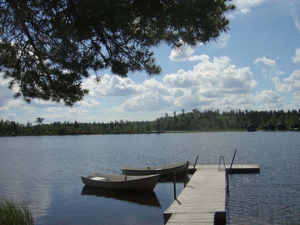 Rustika timmerstugor med sjöläge och värme från både eld och bastu